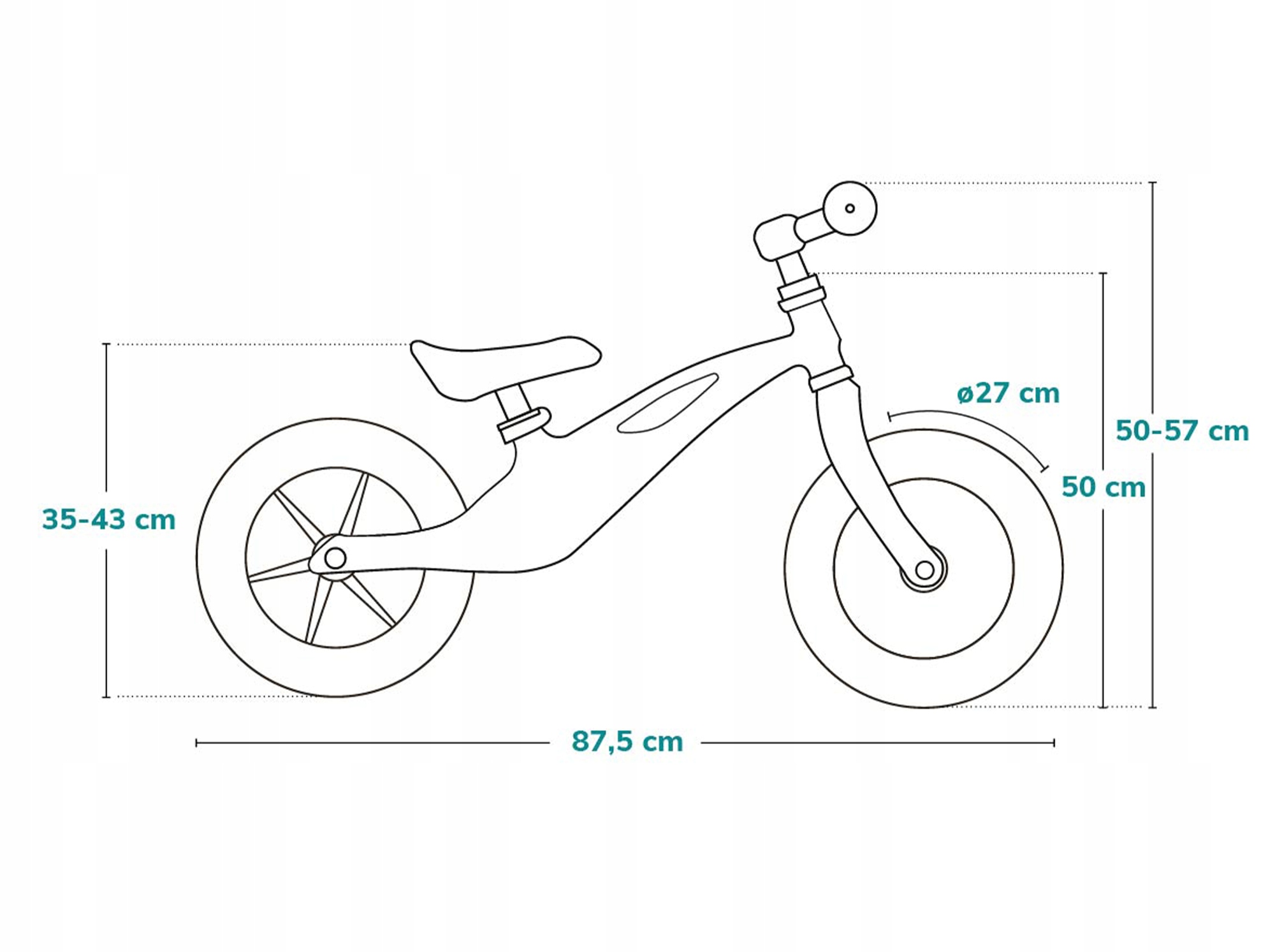 Rowerek biegowy na magnezowej ramie. Lekki, bezobsługowe koła PU, blokada skrętu kierownicy. Idealny dla dzieci od 2 roku życia. Wspomaga rozwój motoryczny.