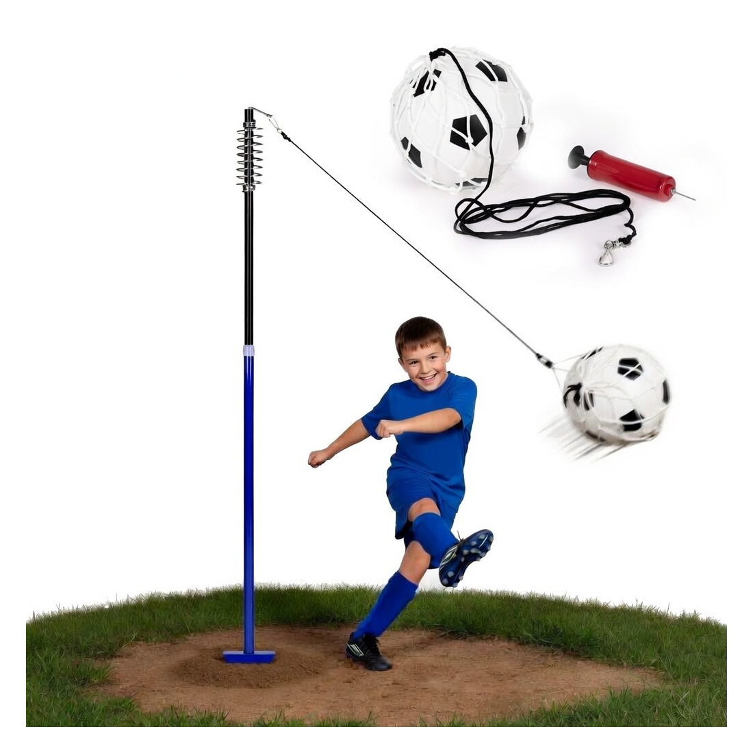 Sprężyna pochłania część energii uderzenia, ograniczając gwałtowne szarpnięcia i zapewniając płynniejszą pracę zestawu. Dzięki temu ruch piłki jest bardziej kontrolowany, a całość lepiej reaguje na siłę kopnięcia. Rozwiązanie to zwiększa komfort treningu oraz wspiera rozwój koordynacji i kontroli nad piłką.